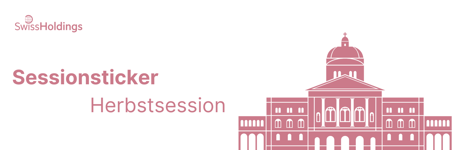Der SwissHoldings-Sessionsticker informiert über die anstehenden Geschäfte der Herbstsession 2025. Der Ticker beinhaltet eine kurze Übersicht über die Geschäfte, den bisherigen Verlauf und Positionen unseres Verbands.